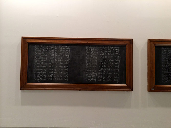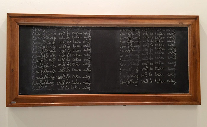 orientation and covered with single handwritten sentence repeated 25 times in white chalk